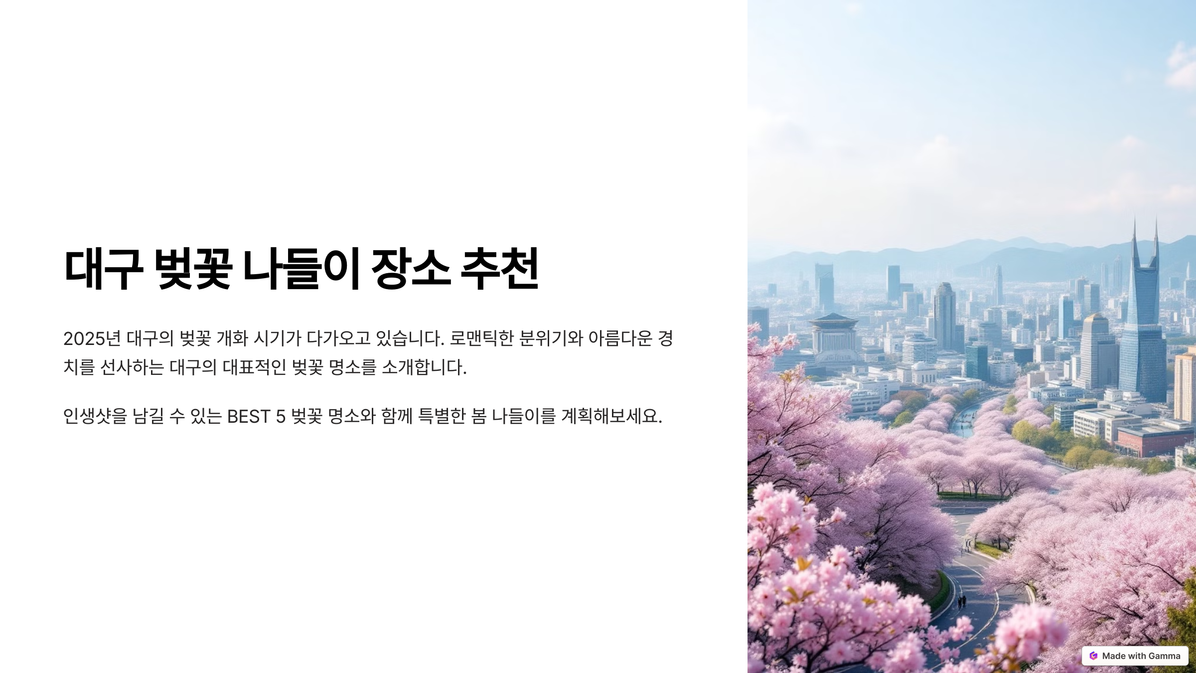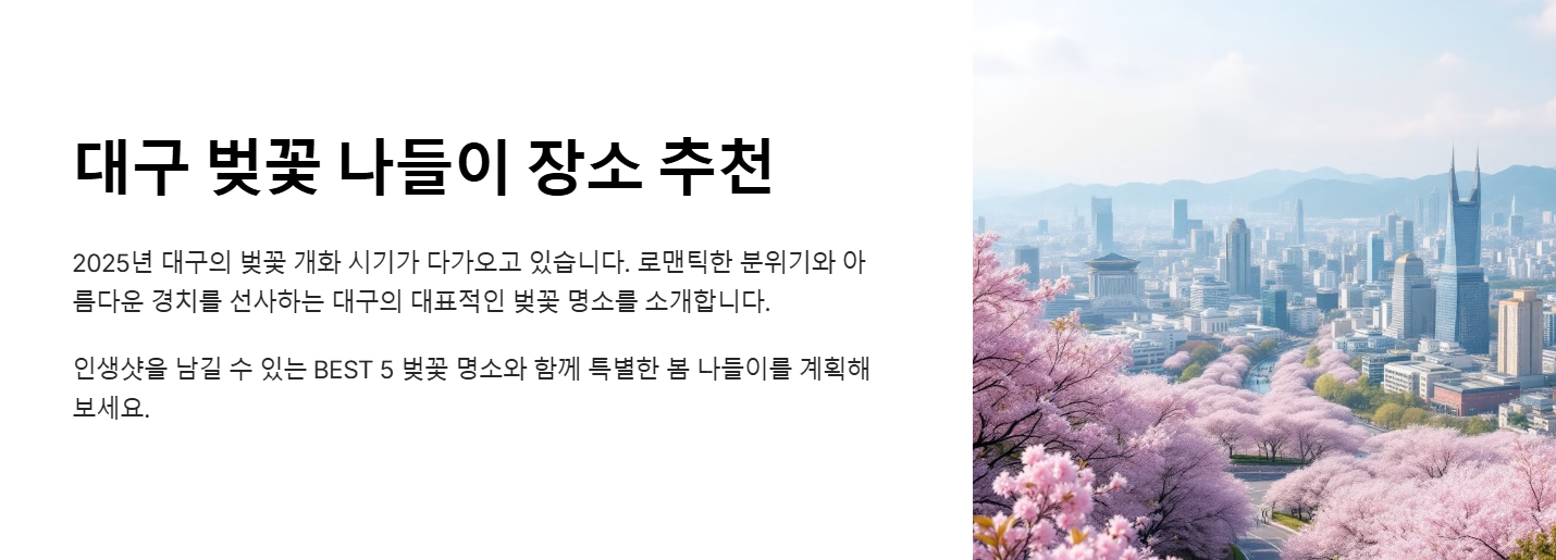 2025년 3월 중하순부터 벚꽃이 개화할 예정이니 완벽한 대구 벚꽃 여행을 계획해 보세요! 🌸📸