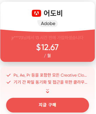 어도비는 구독 공유 방식에서 가장 주의가 필요한 서비스 중 하나입니다. 어도비 팀 플랜 계정을 통해 공유하는 경우, 클라우드 저장 공간은 기본 제공이지만 개인 데이터가 공유될 수 있는 구조이므로 민감한 작업 파일을 저장할 때는 별도 저장소를 활용하시는 것을 권장합니다.