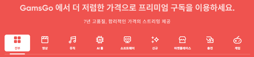 프리미엄 구독을 더 저렴하게! GamsGo에서 ChatGPT 4.0, YouTube Premium, Netflix 등 다양한 서비스를 할인된 가격에 공유해보세요. 겜스고와 함께 비용 절약하고 최고의 혜택을 누리세요!