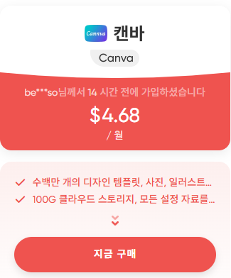 | 캔바 프로 | 14,000원 | 4,000~6,000원 | 8,000~10,000원 | 약 57~71% |