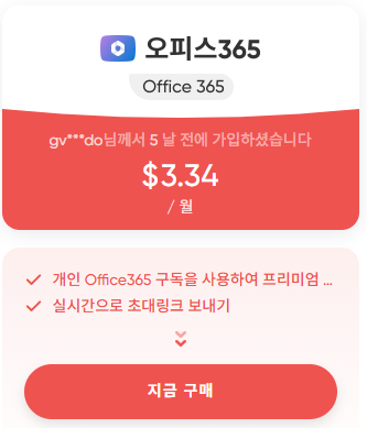 | 마이크로소프트 365 패밀리 | 12,900원 | 3,500~5,000원 | 7,900~9,400원 | 약 61~72% |