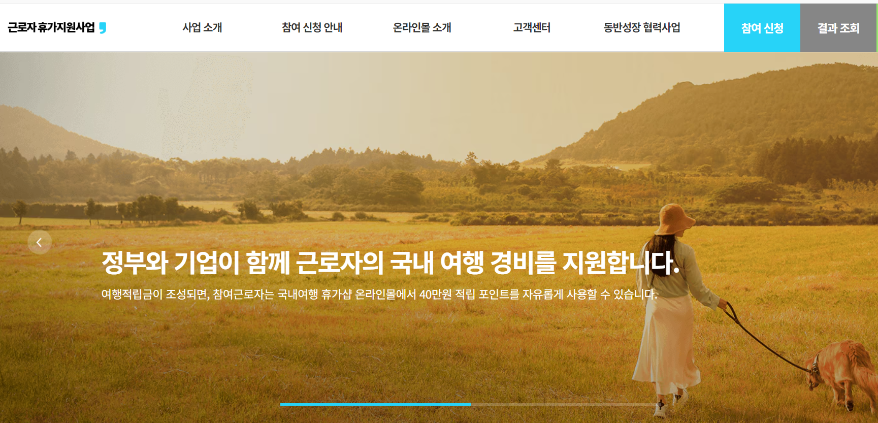 - 국내여행경비 지원: 최대 40만 원 지원 ( 본인 부담금 확인 )