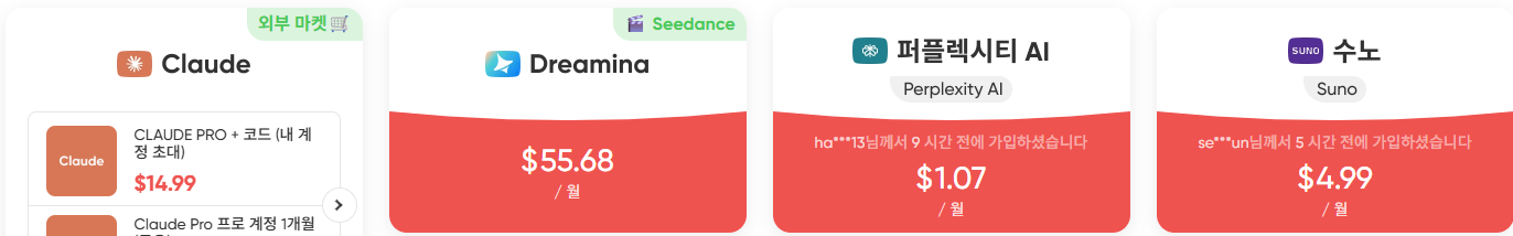 "AI 쓰고 싶지만 매달 3만원이 부담스럽다"는 생각, 많은 분들이 공감하실 것입니다. 바로 이 문제를 해결해주는 것이 갬스고입니다. 정가의 60~70% 할인된 가격으로 모든 인기 AI 서비스를 한 번에 이용할 수 있습니다.