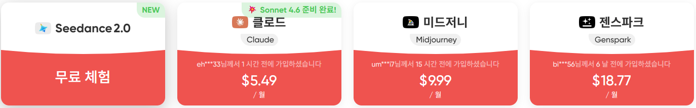 | 5개 동시 이용 | $80 (108,000원) | $38.45 (52,000원) | 52% | 최고 AI 조합 완성 |