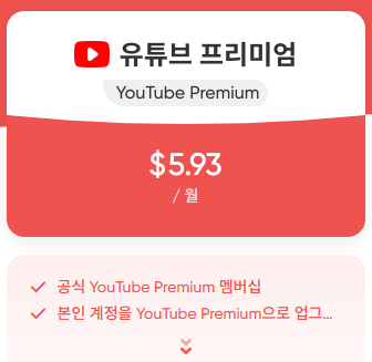 | 유튜브 프리미엄 | 14,000원 | 5,500원 | 61% |