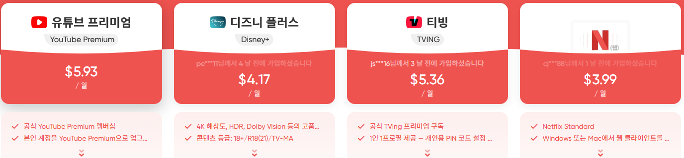 - "가족계정 방식이라 안정적이고, 고객센터 응대도 빠릅니다."