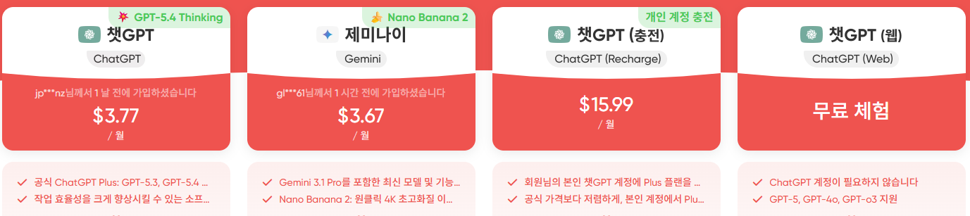 프리미엄 구독을 더 저렴하게! GamsGo에서 ChatGPT 4.0, YouTube Premium, Netflix 등 다양한 서비스를 할인된 가격에 공유해보세요. 겜스고와 함께 비용 절약하고 최고의 혜택을 누리세요!