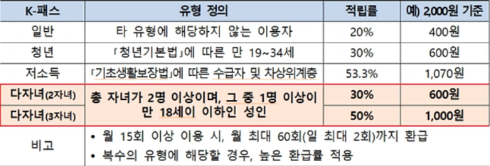 특히 2025년 K패스에 다자녀 가구 유형이 신설되며 대중교통비 환급혜택이 확대 됩니다.