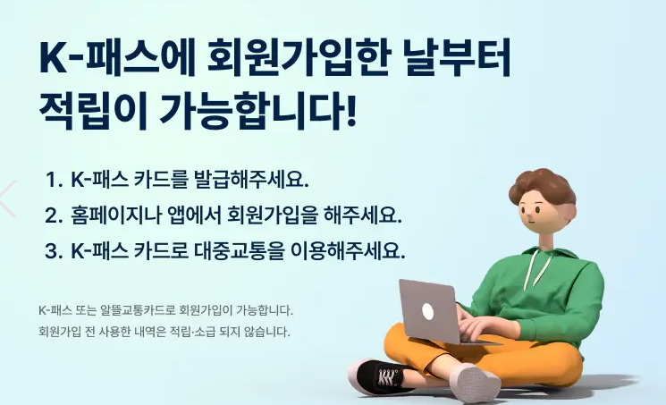 신규회원은 K패스 홈페이지 또는 모바일 앱, 혹은 11개 카드사 홈페이지에서 신청 가능합니다.
